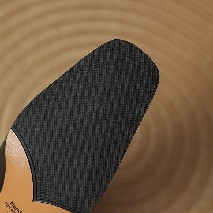 Polished premium genuine leather shaped into a clean square toe and a sculpted flare heel. A quiet statement for modern tailoring and elevated minimalism.